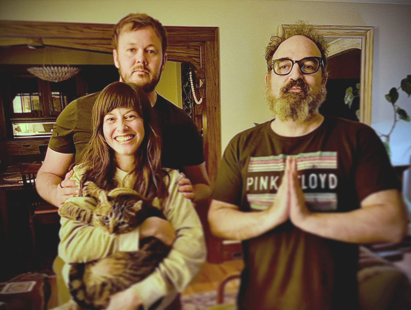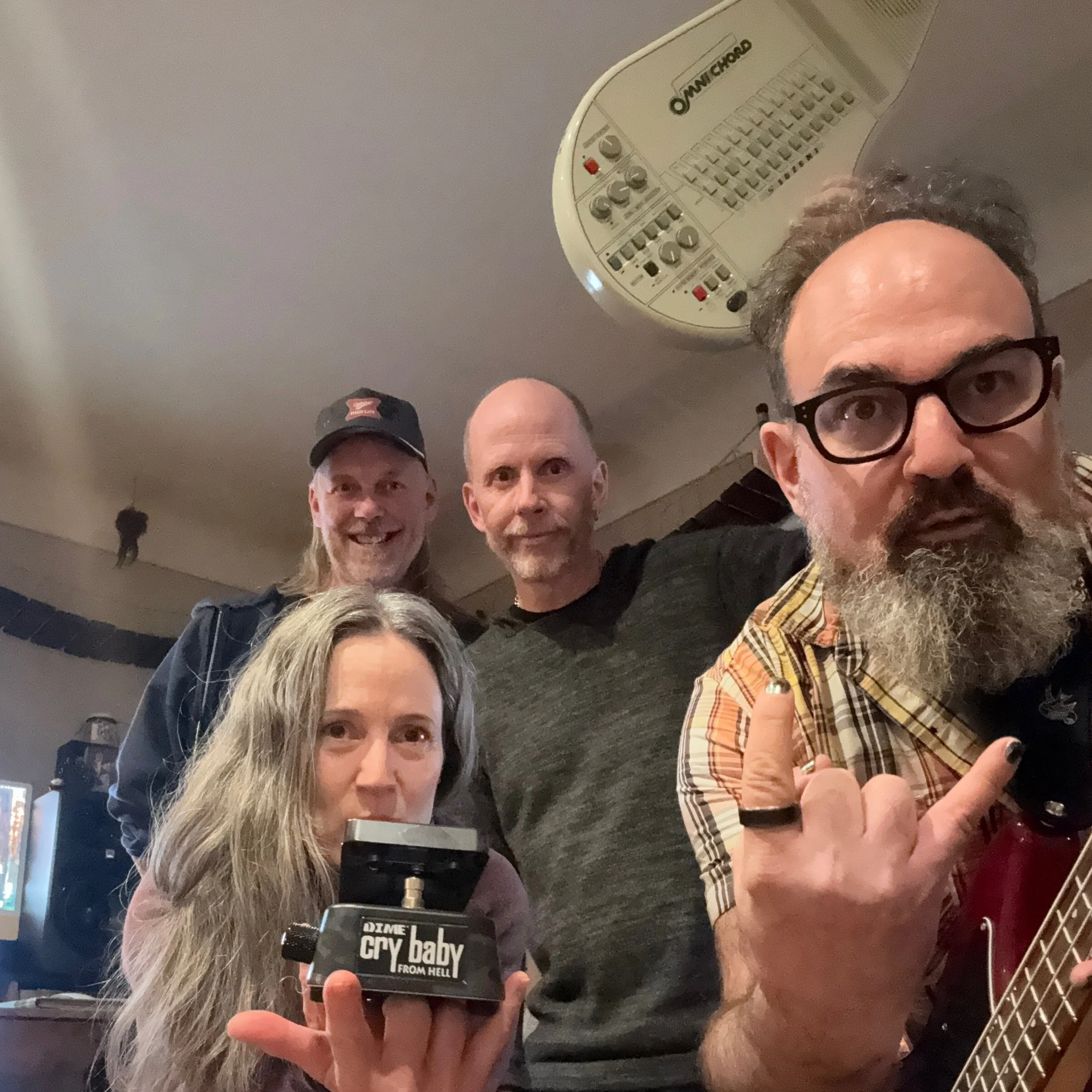 Andrew plays bass, Shelly guitar and vocals, Troy on Omnichord/guitar/vocals/synths/glock/production.